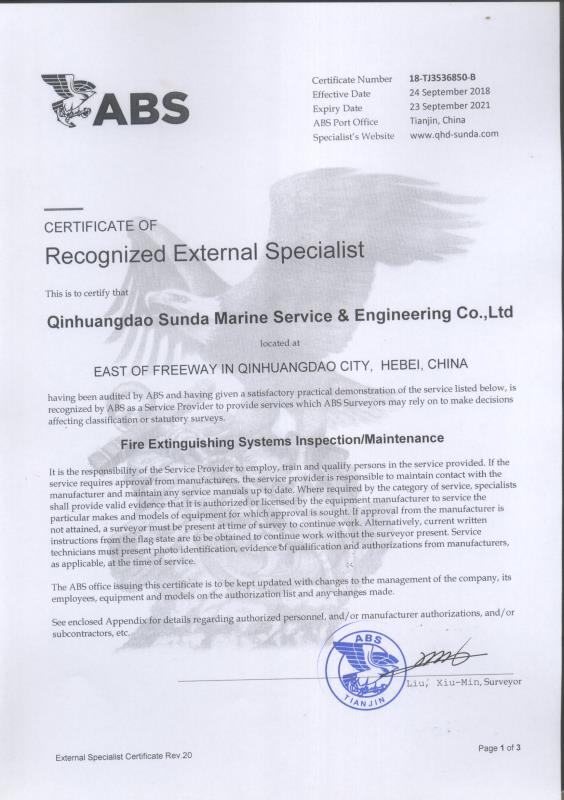 秦皇島順達(dá)船務(wù)有限公司位于美麗的海濱城市、中國北方著名的能源輸出大港--秦皇島。公司從事于船舶修理、物料供應(yīng)、水下檢測、船體測厚、消防救生設(shè)備及救生艇檢驗、電氣自動化修理等服務(wù)。 公司自1997年成立至今,先后為國內(nèi)外船東修理、檢驗各類船舶萬余艘,積累了豐富的施工經(jīng)驗。公司現(xiàn)有場地100余畝,員工30余人,以及工程用車若干臺。我們公司一直本著嚴(yán)以律己、真誠待人、精益求精、信譽(yù)至上的經(jīng)營理念,以優(yōu)質(zhì)的服務(wù)、專業(yè)的施工、合理的收費(fèi),得到了國內(nèi)外船東的廣泛認(rèn)可,贏得了良好的口碑和信譽(yù)。 公司已取得了中國船級社(CCS)、美國船級社(ABS)、日本船級社(NK)、德國船級社(DNV GL)等各個船級社的消防救生和救生艇檢驗資質(zhì), ...